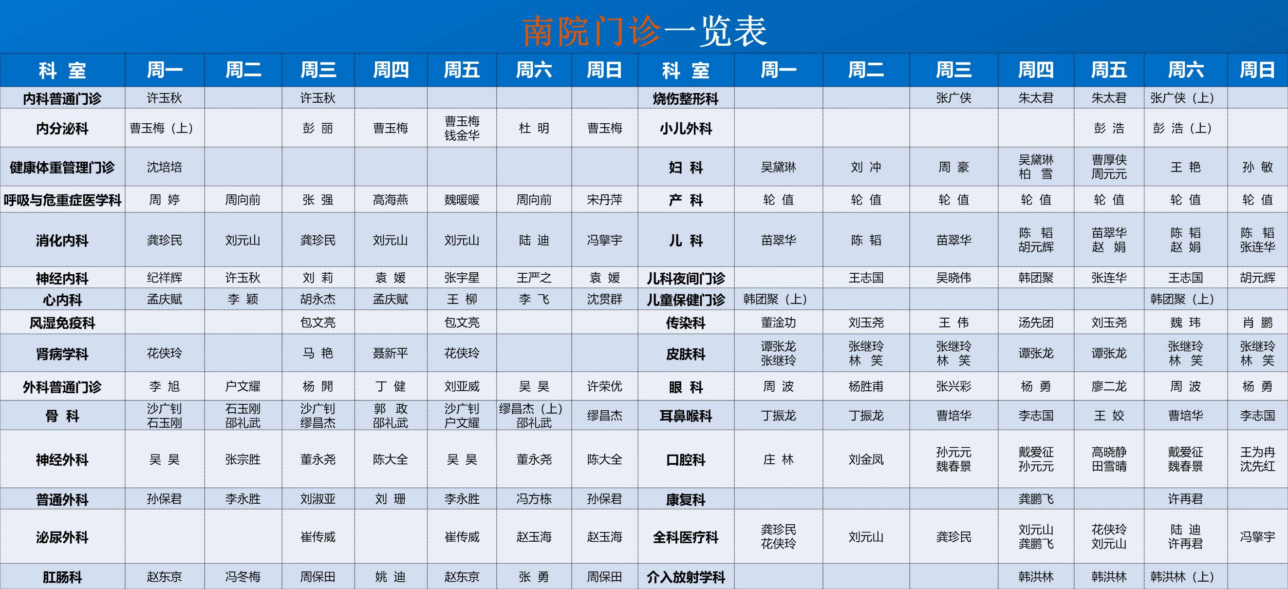 南院门诊排班表