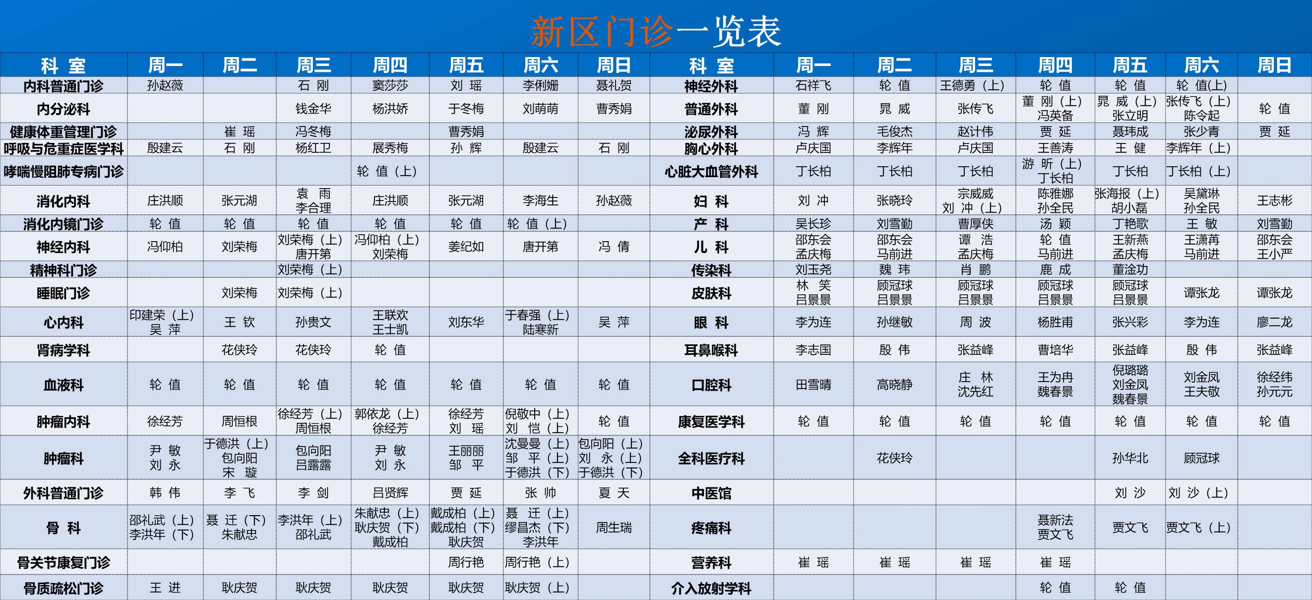 新区医院门诊排班表