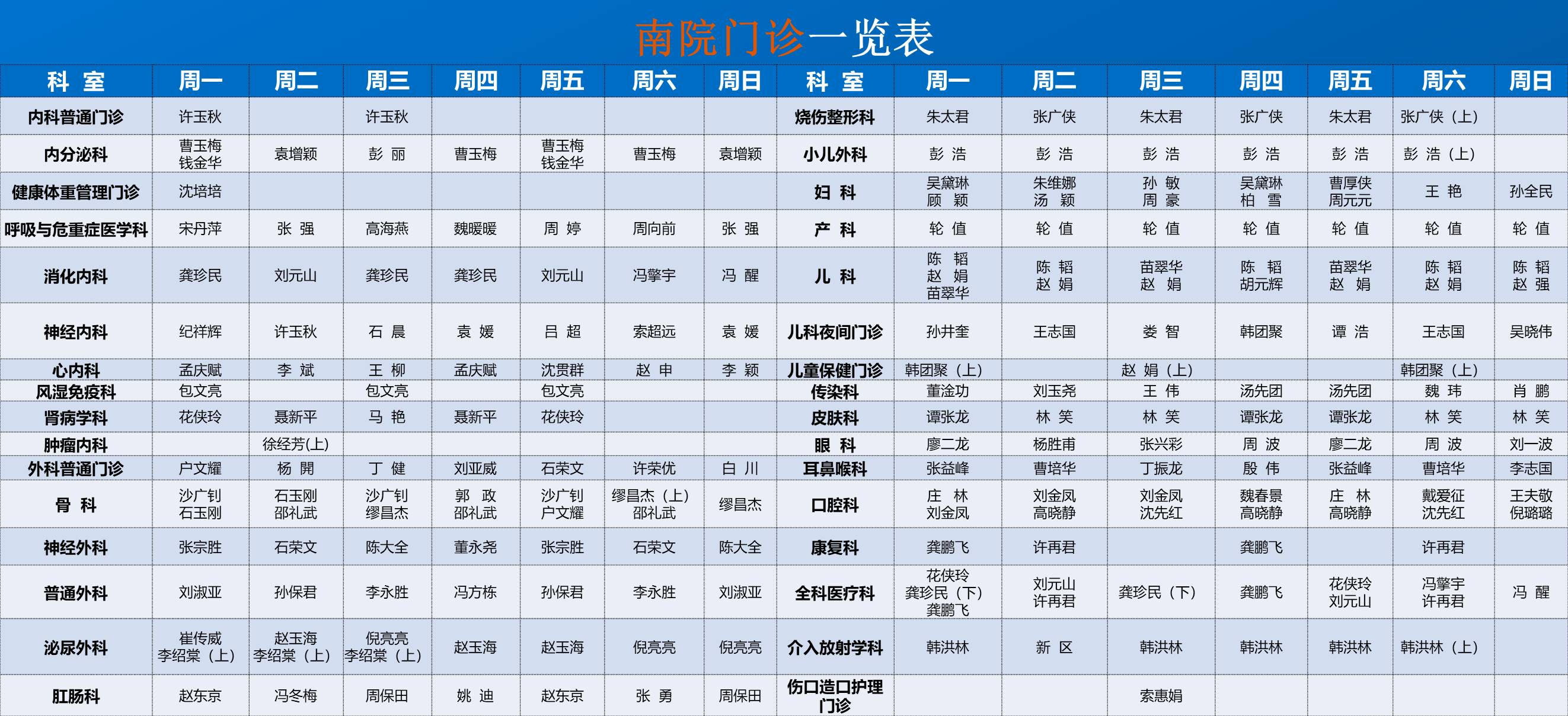 南院门诊排班表