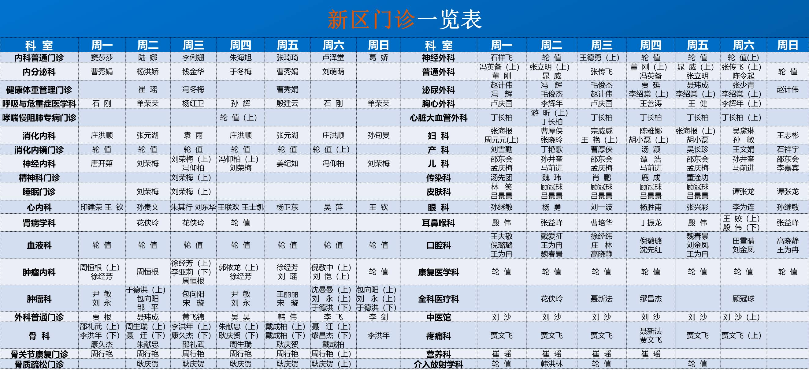 新区医院门诊排班表