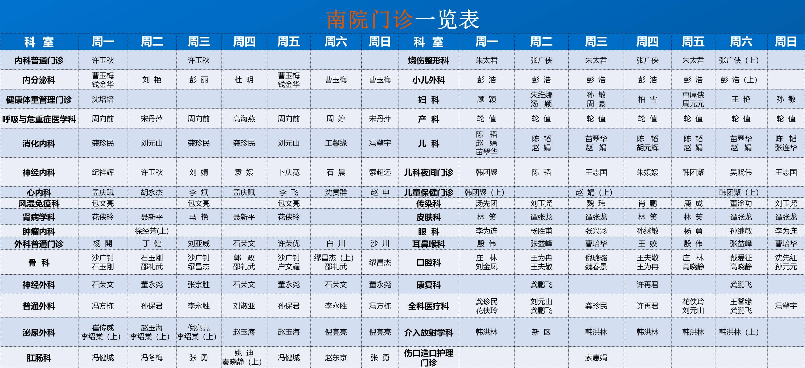南院门诊排班表