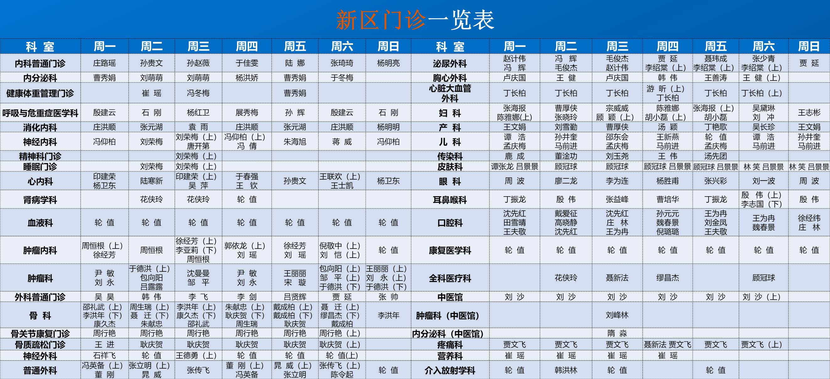 新区医院门诊排班表