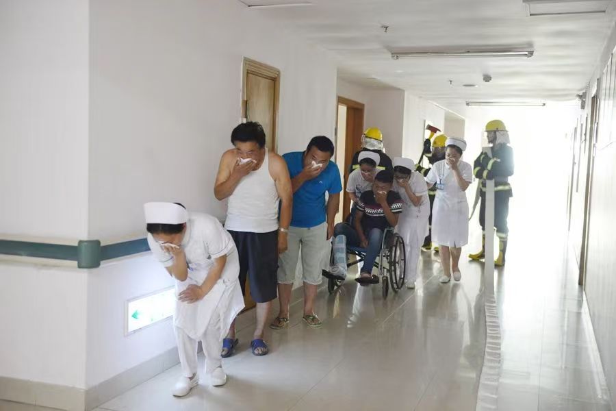 培训结束后,各科室分别进行了消防灭火及疏散逃生演练。在灭火器实操环节,各科室人员轮流上阵,按照“提、拔、握、压”的操作要领,对准模拟火源根部精准喷射。医护人员在演练中特别注重患者转运细节,用湿毛巾捂住口鼻,低姿快速通过烟雾区;后勤保障组则重点演练了消防水带快速连接与消火栓加压操作。整个过程紧张有序,达到了“以练促战”的预期效果。