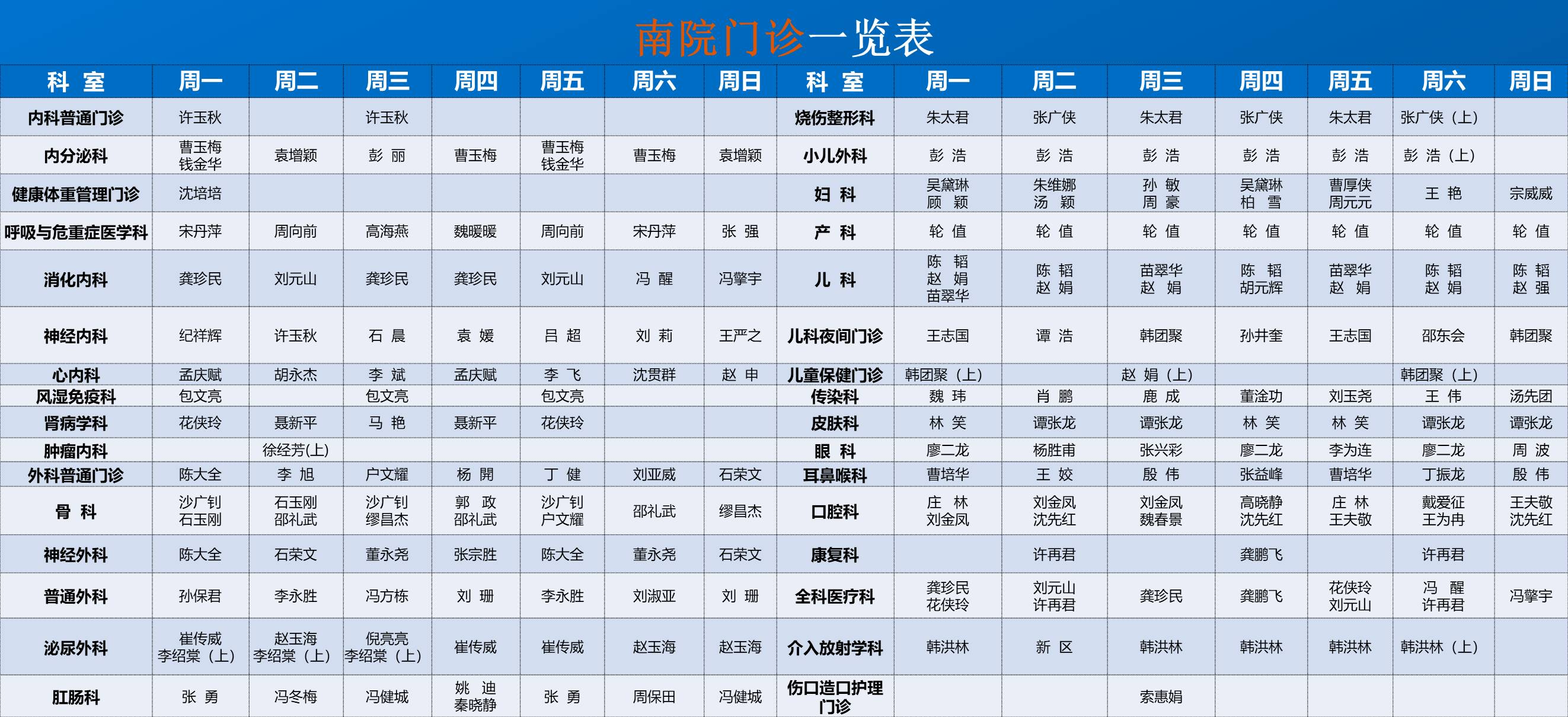 南院门诊排班表